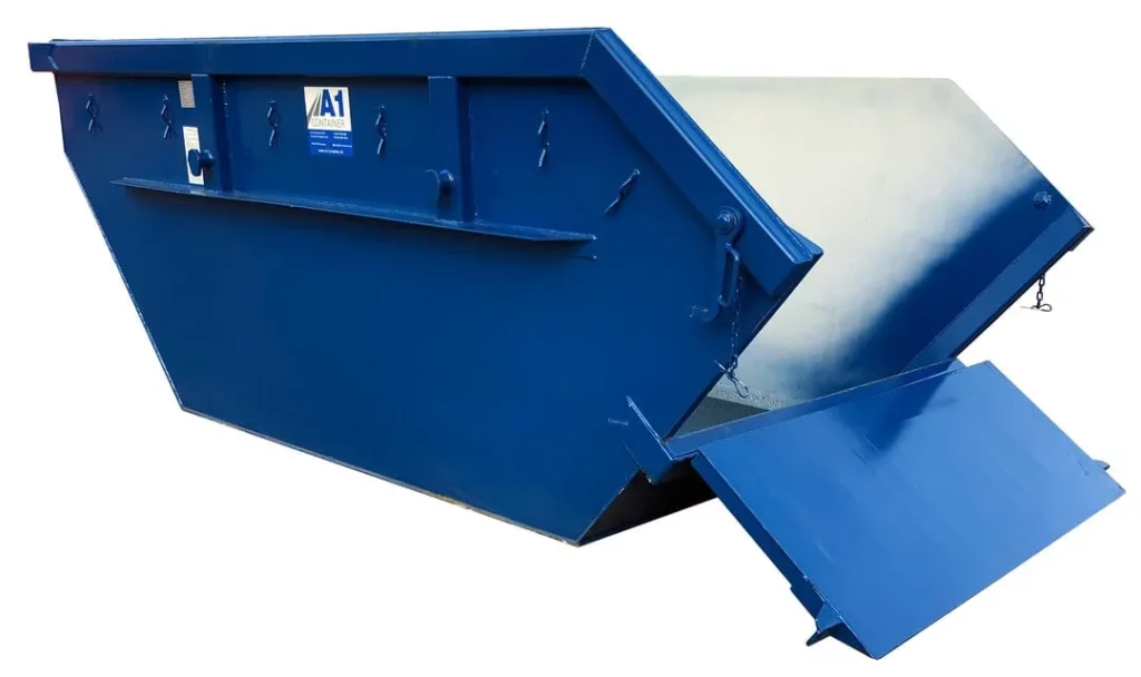 Absetzmulde 7 m³ mit Bauschuttklappe – RAL 5010 Enzianblau – Absetzcontainer