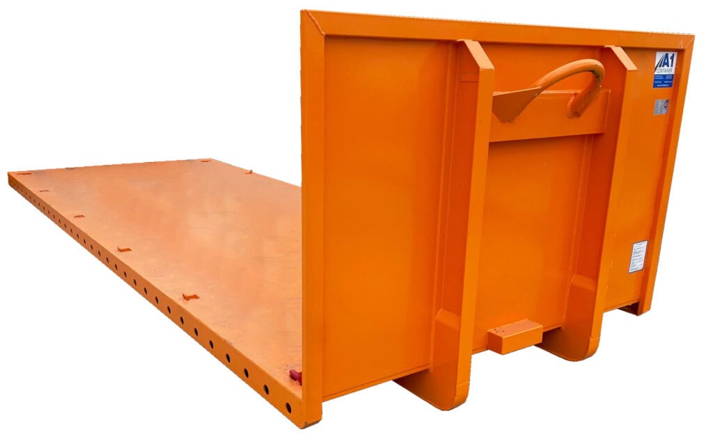 Plattform 6,5 Meter – Zurrösen – Lochleiste – RAL 2011 Tieforange – Abrollcontainer